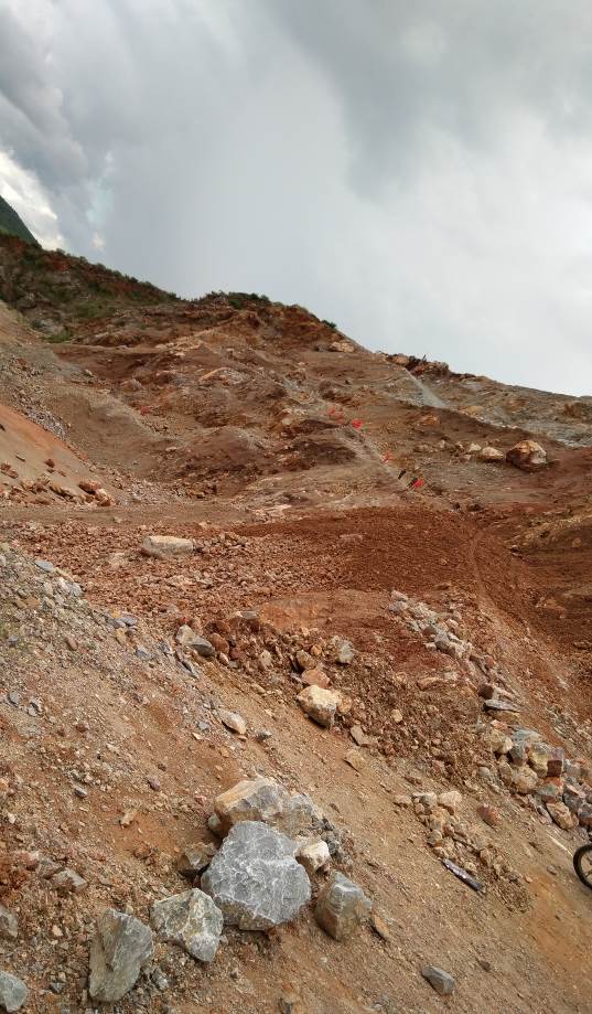 我作為一名爆破員,有機會參與了2019年7月27日云南神斧爆破工程有限公司的首次爆破作業(yè)。在本次爆破過程中我們遇到了很多困難,比如:爆破現(xiàn)場在大山頂,危貨運輸車只能運送到山腳附近,距離炮孔周圍還有近五百米遠,那么如何將炸藥從山腳運送到山頂?shù)呐诳字車兀荒苡米钤嫉姆绞?-人工扛。在炎熱的太陽下,我們只能將一袋一袋炸藥扛在肩上,從山腳向山頂慢慢地爬,攀爬的過程路面凹凸不平,有時還會遇到碎石滑落的突發(fā)情況。另一個困難是在炮孔裝好后,因炮孔周圍全是較大的碎石,無土填塞五至六米深的炮孔,我們只能從有土的地方挖土,用撮箕抬到炮孔進行填塞。憑著一股不服輸?shù)钠磩?,我與其他爆破員克服爆破困難。